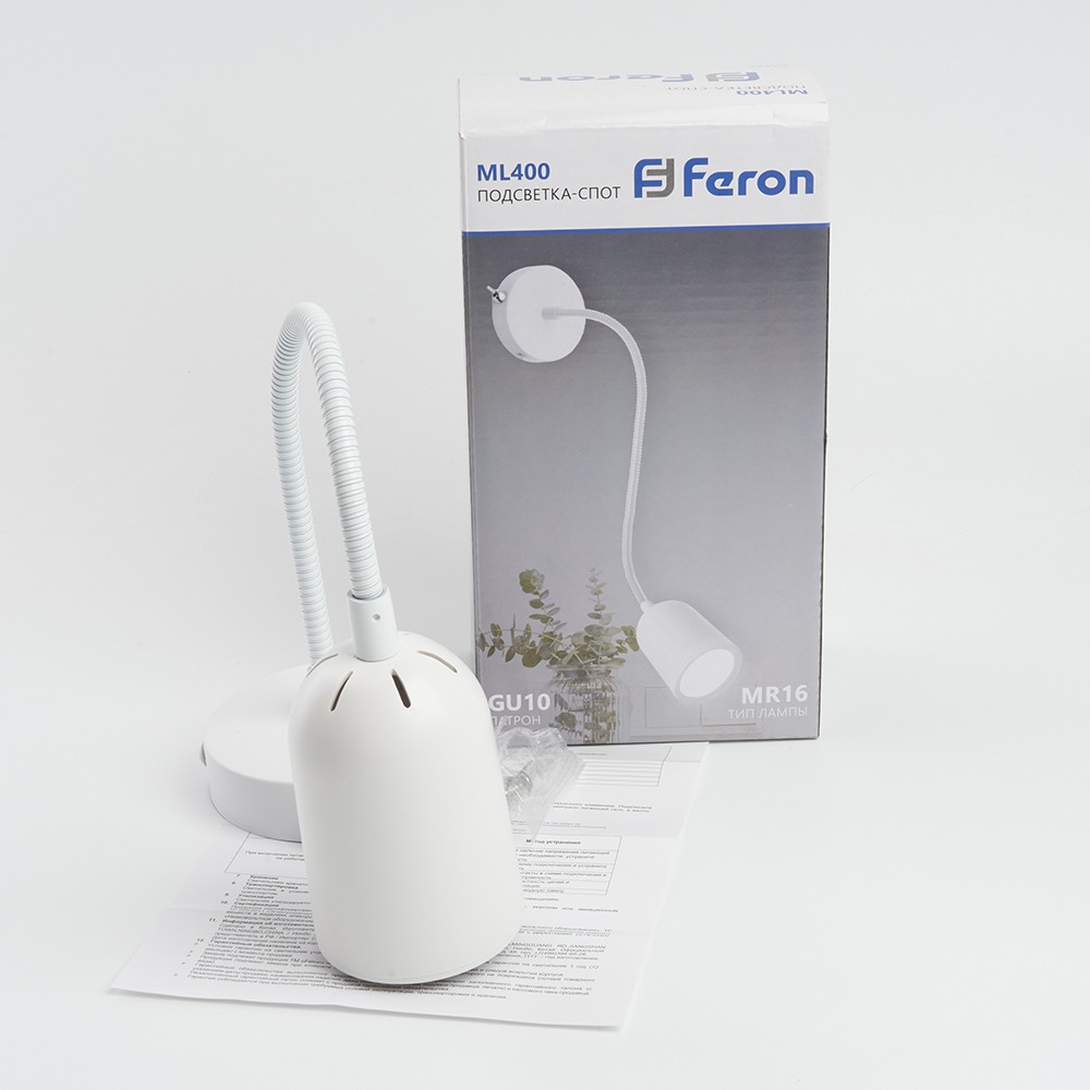 Подсветка настенная GU10 (под лампу) FERON 48441 белый, 35W, 230V, корпус металл, термопластик, IP20, 80*80*400мм,