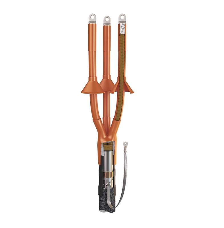 • Предназначены для оконцевания 3-х жильных кабелей: • с бумажной маслопропитанной изоляцией • с броней из стальных лент или без брони • с общей алюминиевой или свинцовой оболочкой • на напряжение 6 и 10 кВ • Соответствует требованиям ГОСТ 13781.0-86 • Типы монтируемых кабелей:ААБл, (А)СБл, (А)СБГ, ААГ, (А)СГ, ААБв, (А)СБШв, ААШв, (А)СШв, ААБ2лШв, (А)СБ2лШв • Основные термоусаживаемые элементы муфты: перчатка, трубки жильной изоляции, концевые манжеты и жильные изоляторы выполнены из трекингостойкого материала кирпично-красного цвета • Материал трубок устойчив к воздействию ультрафиолетовых лучей, обеспечивает эксплуатационную надежность в любых погодно-климатических условиях • Муфты оснащены системой жильных изоляторов, обеспечивающих наличие гарантированно сухих зон и увеличивающих длину пути токов утечки • Применение маслостойкого герметика со специальными свойствами обеспечивает герметизацию корня разделки кабеля и способствует выравниванию напряженности электрического поля • Термоплавкий клей, нанесенный на внутренние поверхности поясной манжеты, перчатки и концевых манжет, обеспечивает полную герметичность муфты после монтажа • Монтаж узла заземления осуществляется комбинированным способом. Базовая комплектация включает в себя пружину постоянного давления, используемую для крепежа провода заземления к металлической оболочке. Крепеж на бронелентах осуществляется методом пайки • При монтаже узла заземления на кабель с броней из стальных или алюминиевых проволок необходимо дополнительно использовать «Комплект заземления КМПБ», соответствующий выбранной муфте • Пружина постоянного давления обеспечивает быстрый и надежный монтаж провода заземления на металлической оболочке. Использование пружины исключает возможный риск термического повреждения бумажной изоляции под алюминиевой оболочкой в случае пайки с применением тугоплавкого припоя «А» • Комплект муфты универсален и позволяет использовать как кабельные наконечники под опрессовку, так и болтовые наконечники • Инструмент для монтажа: пропановая горелка ПГ (КВТ), набор для срыва головок болтовых наконечников и соединителей НМБ-6 (КВТ) • Все полимерные композиции, использованные для производства термоусаживаемых компонентов «КВТ», не содержат галогенов (HF=Halogen Free) • Выпускается по ТУ 3599-006-97284872-2006