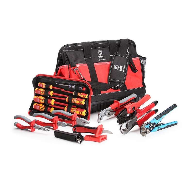 • Состав набора: • пресс-клещи СТК-01 • диэлектрические ножницы НКи-16у • стриппер WS-04B • стриппер КС-25 • нож монтерский диэлектрический НМИ-02 • диэлектрические пассатижи 180 мм • диэлектрические бокорезы 160 мм • диэлектрические длинногубцы 200 мм • клещи переставные диэлектрические 250 мм • набор диэлектрических отверток НИО-08 • сумка электромонтажника С-01 • Прочная сумка с резиновым дном и большим количеством отделений. Ремень с мягким наплечником • Рифленые резиновые накладки на ручках • Вес набора с сумкой: 5.40 кг