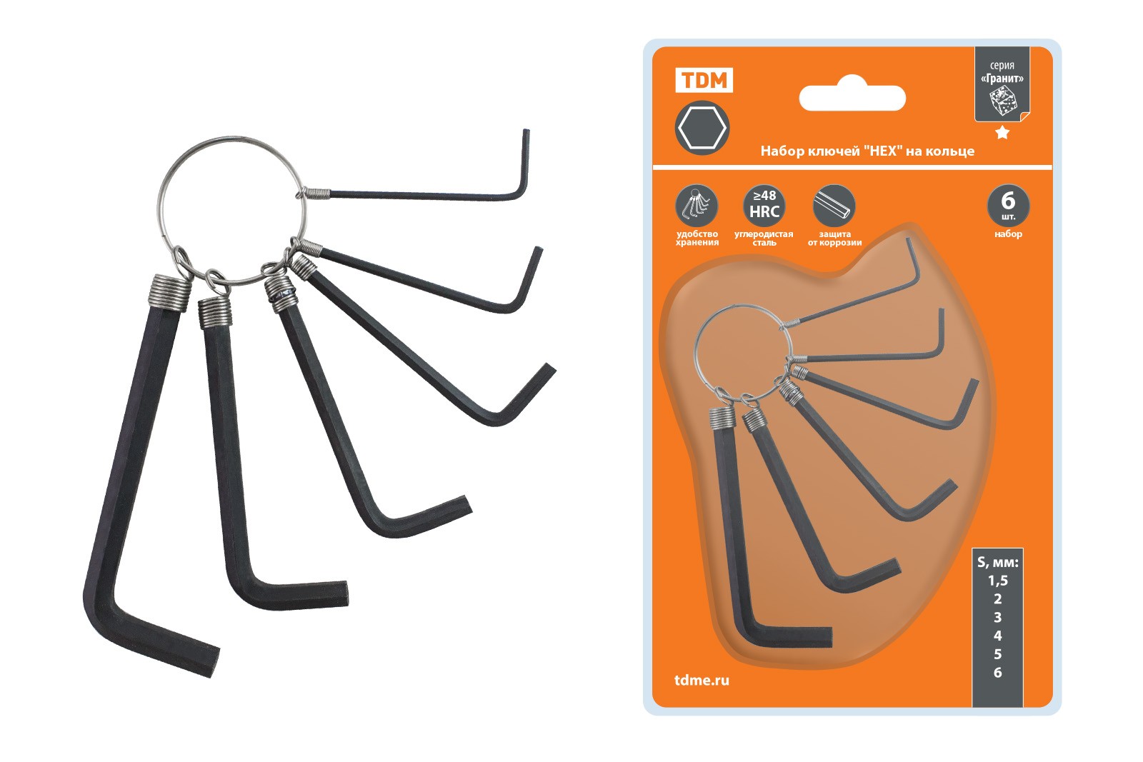 Набор ключей “HEX” на кольце 8 шт.: 1.5 – 8 мм, углеродистая сталь, блистер “Гранит” TDM
