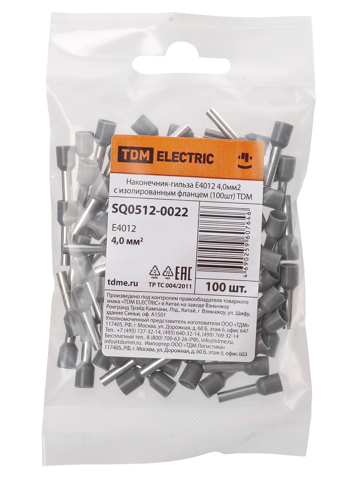 Наконечник-гильза Е4012 4,0мм2 с изолированным фланцем (100шт) TDM