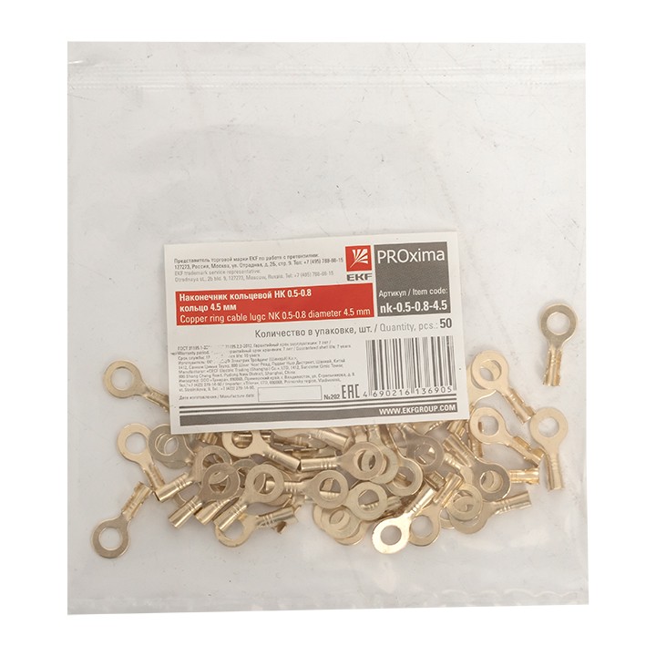 Наконечник кабельный НК 0,5-0,8 кольцо 4,5 мм 50шт/уп EKF PROxima