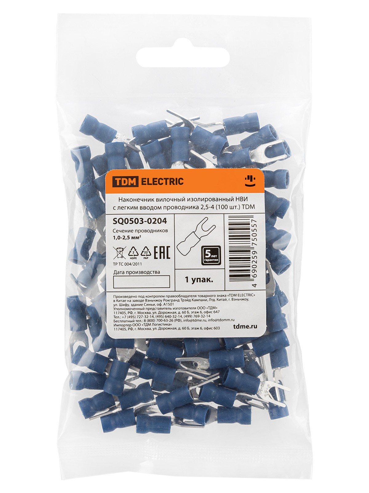 Наконечник вилочный изолированный НВИ с легким вводом проводника 2,5-4 (100 шт.) TDM