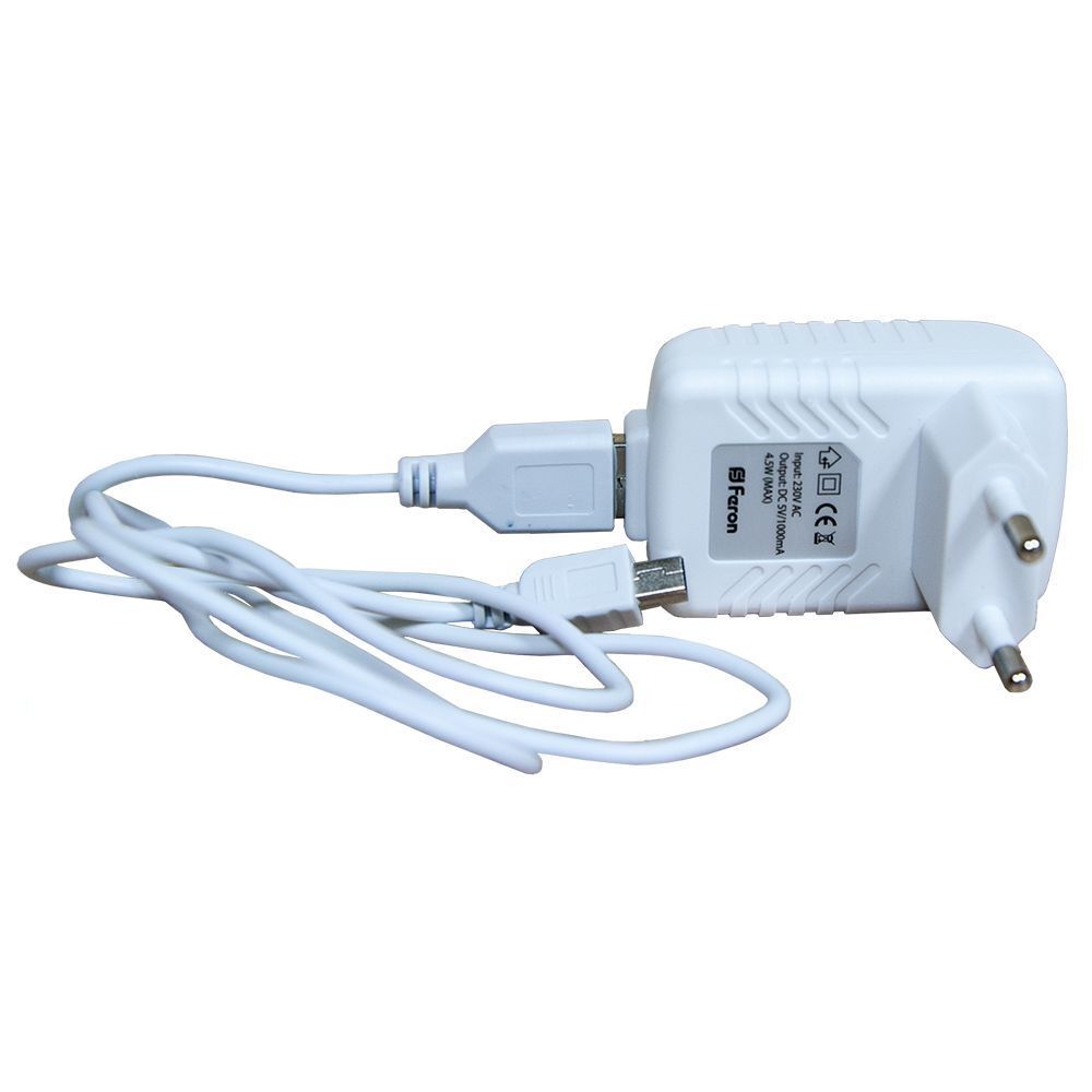 Светильник настольный светодиодный диммируемый, складной FERON DE1720, белый, 4W, 5V, 18LED, 100Lm, (дневной), материал пластик, металл, в комплекте кабель 5В, кабель USB 1,5м, 185*28*42мм