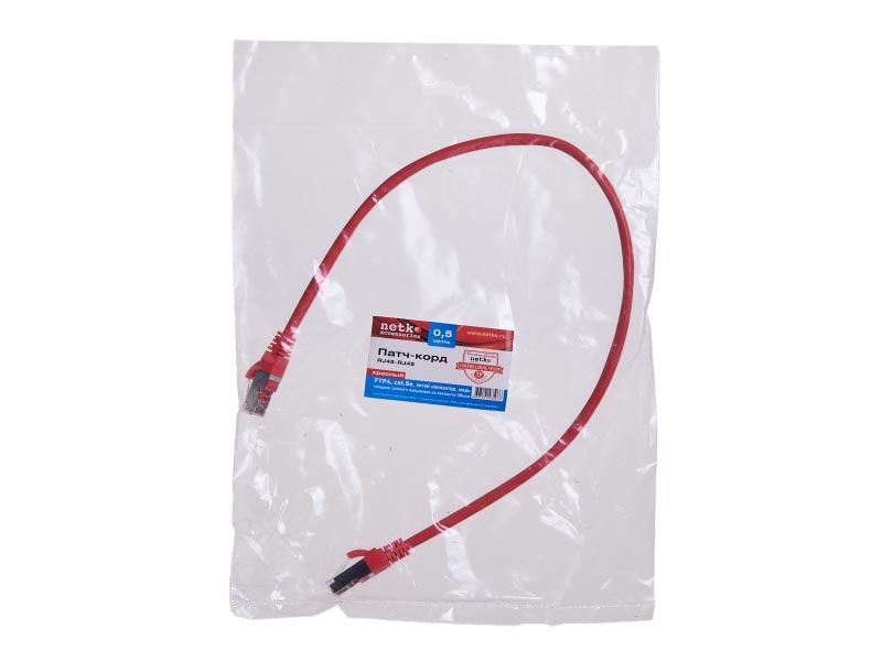 Патч-корд FTP4 cat.5e, 0.5м, литой коннектор, красный, Netko CKC