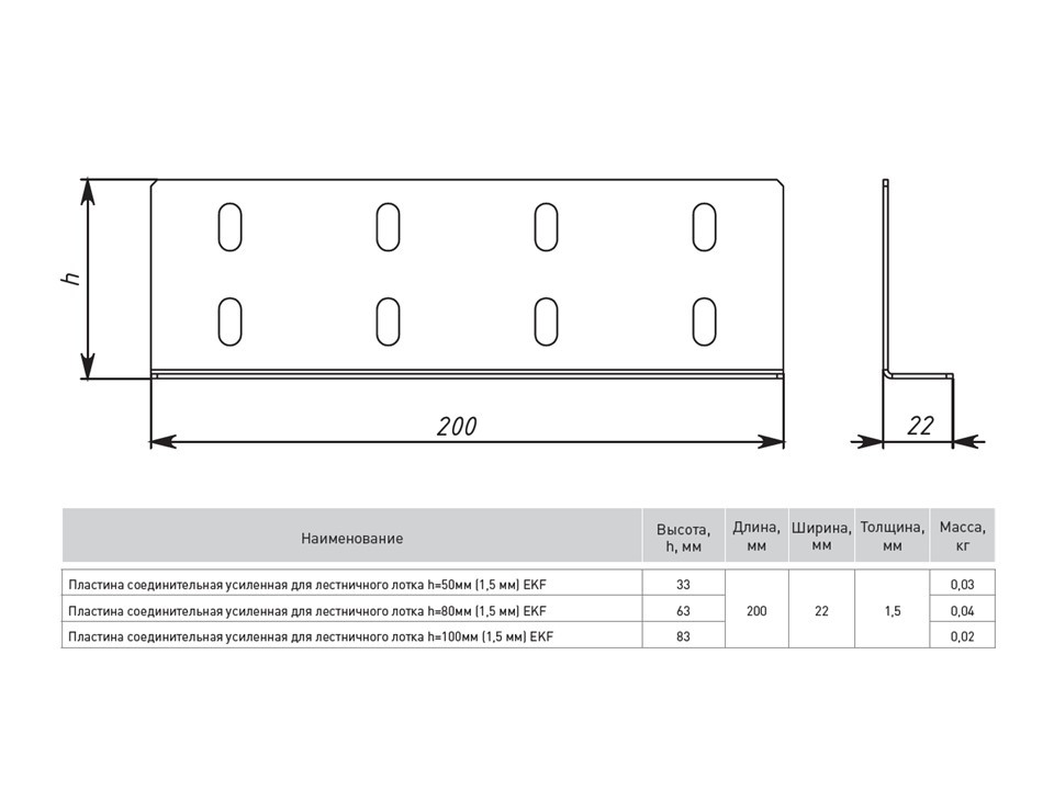 Пластина соединительный усиленная для лестничного лотка h=200 мм (1,5 мм) EKF