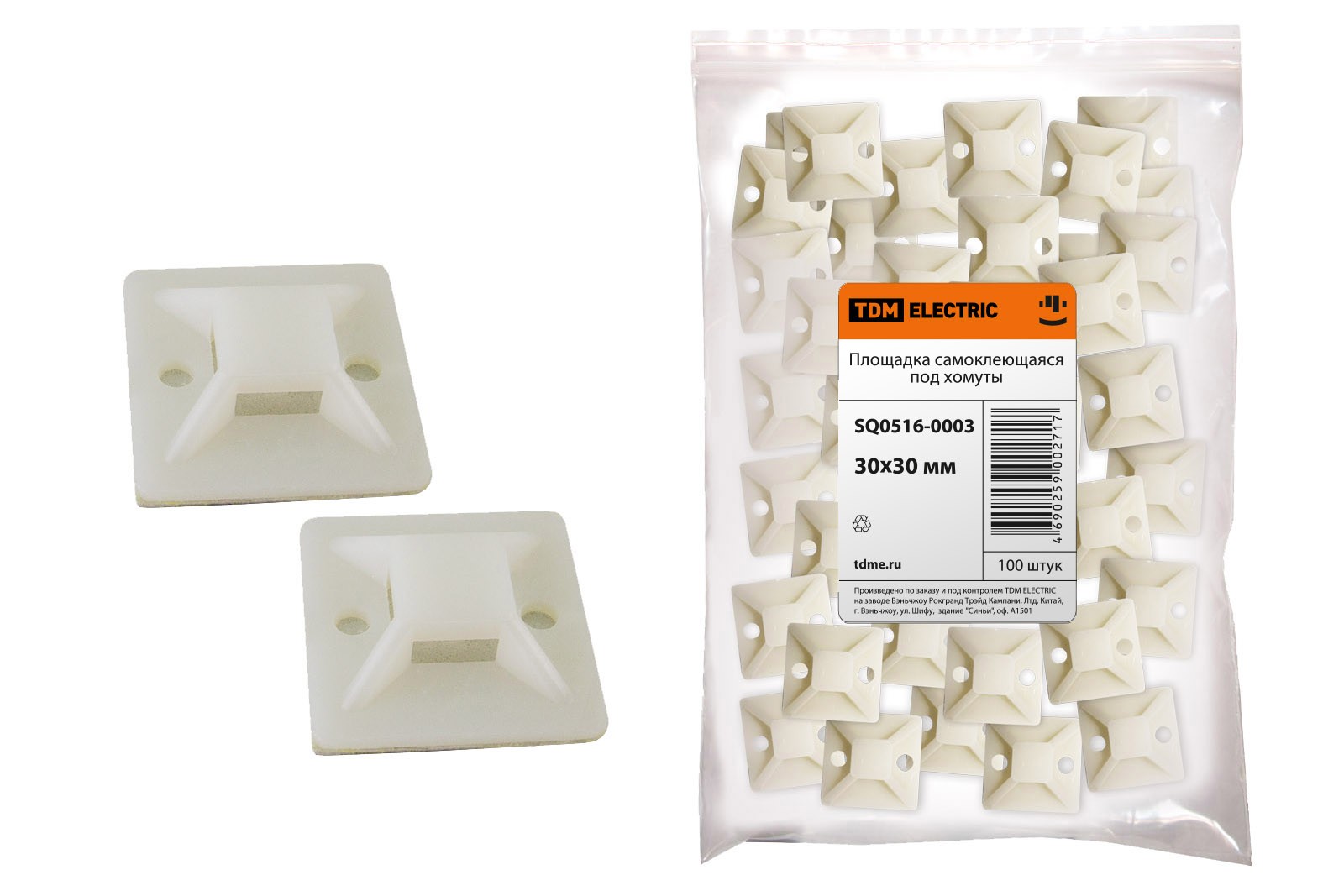 Площадка самоклеющаяся Stekker WMCL3030 30×30мм под хомуты белый 100 шт/уп