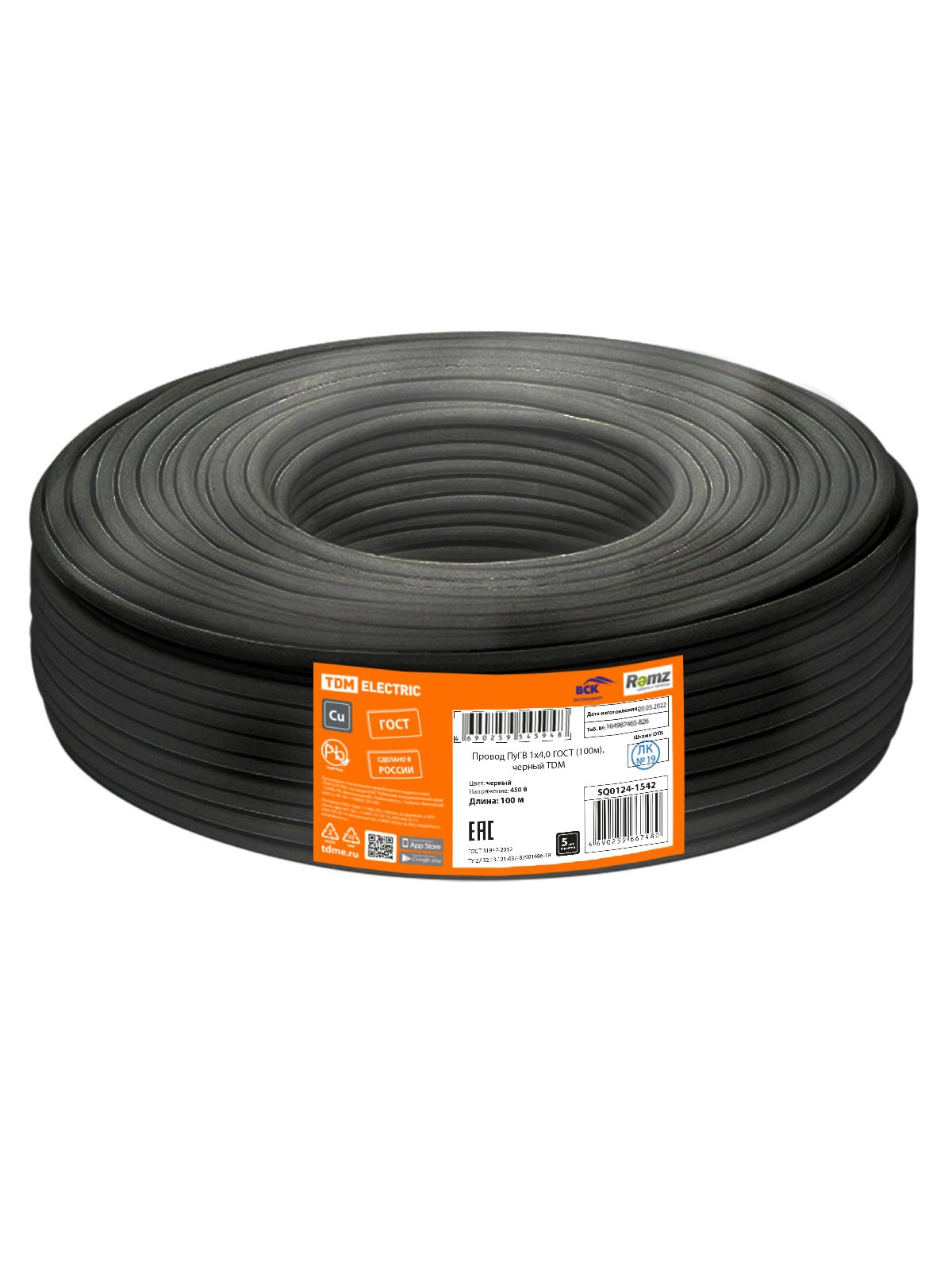 Провод ПуГВ 1х4,0 ГОСТ (100м), черный TDM