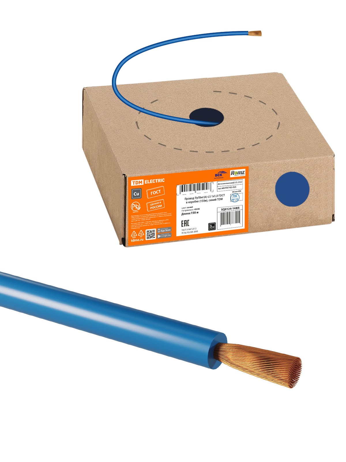 Провод ПуГВнг(А)-LS 1х1,0 ГОСТ в коробке (150м), синий TDM