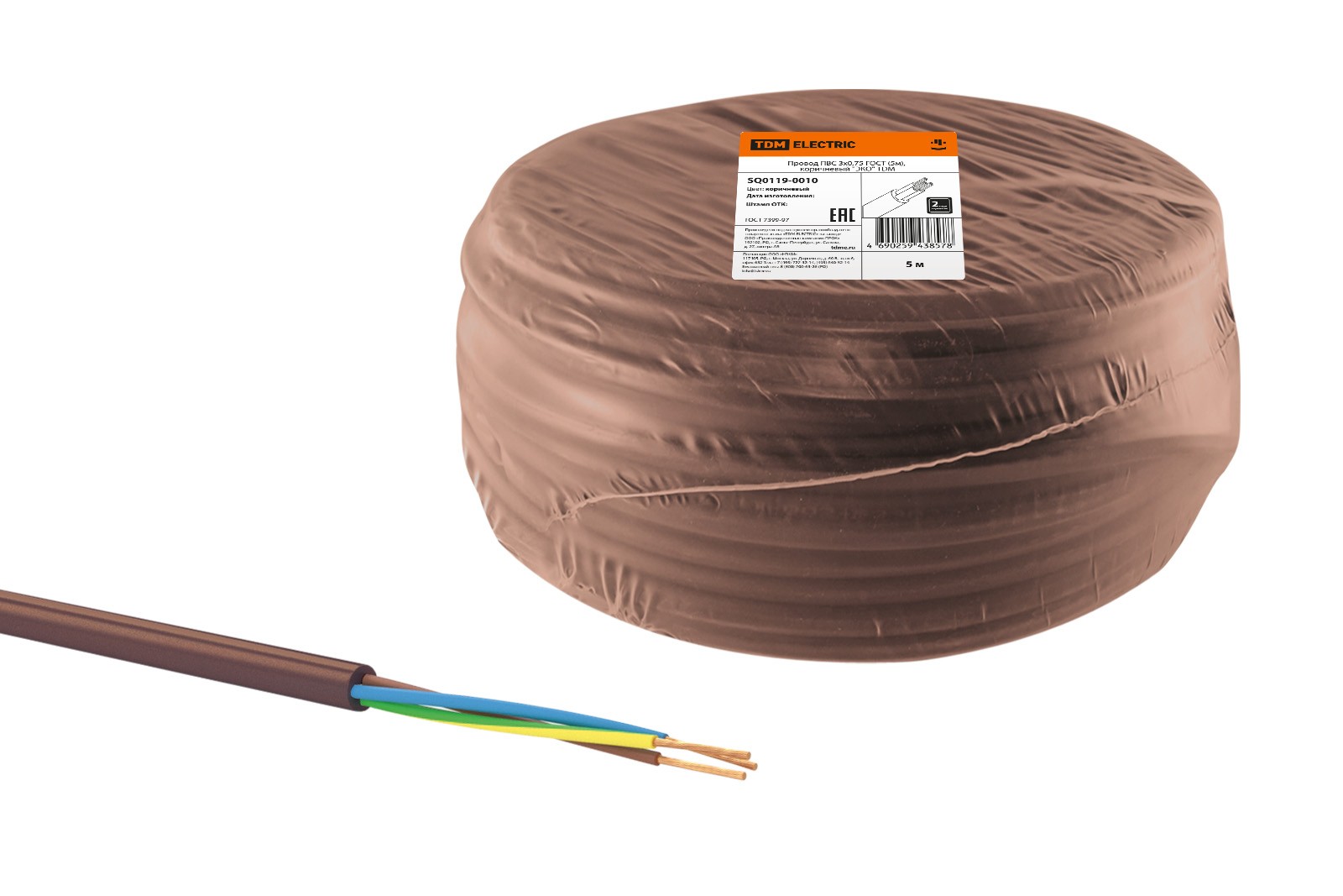 Провод ПВС 3х0,75 ГОСТ (5м), коричневый "ЭКО" TDM