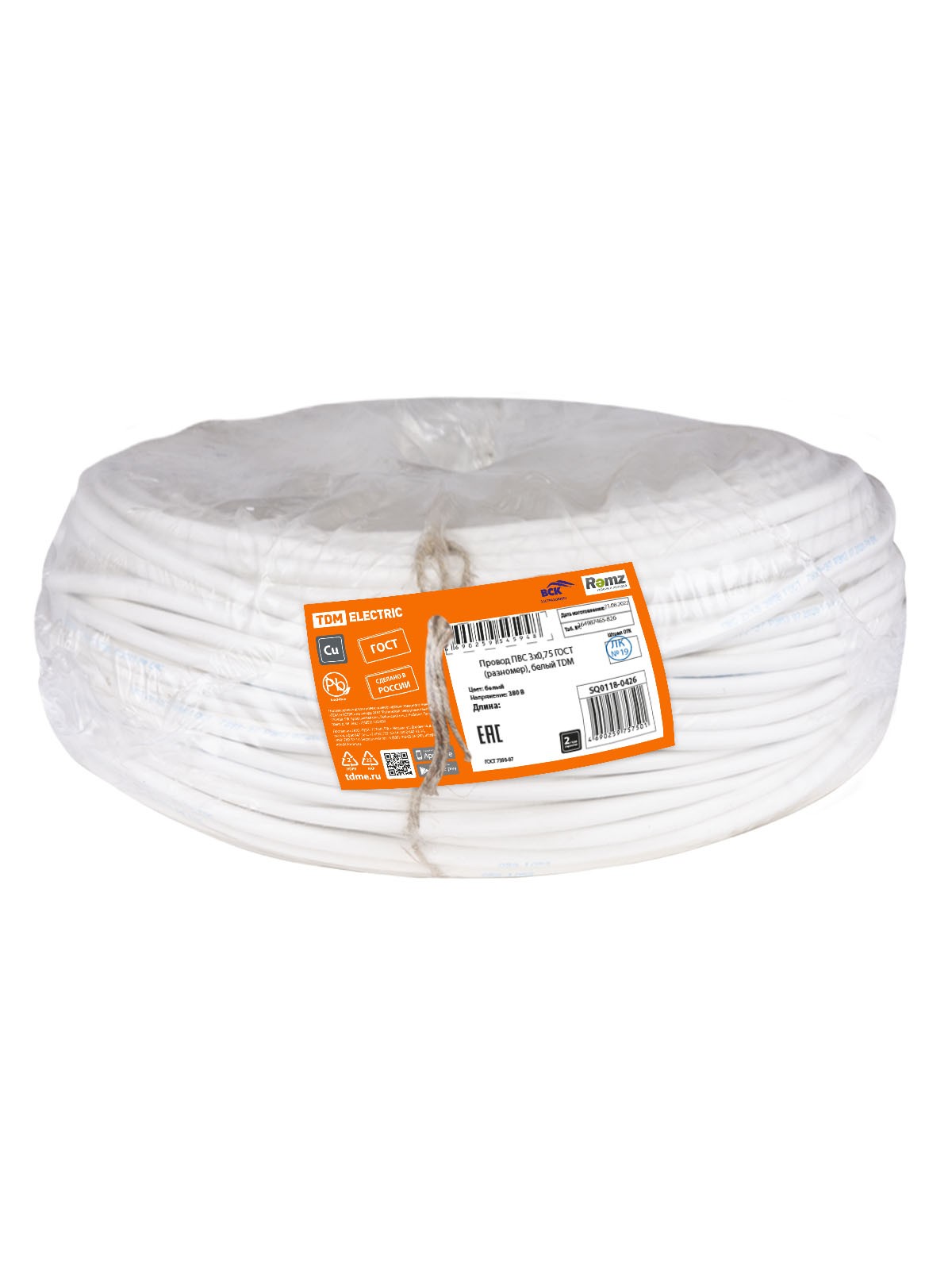 Оставить заявкуПровод ПВС 3х0,75 ГОСТ (разномер), белый TDM