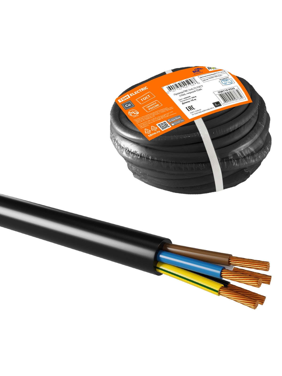 Провод ПВС 5х0,75 ГОСТ (10м), черный TDM