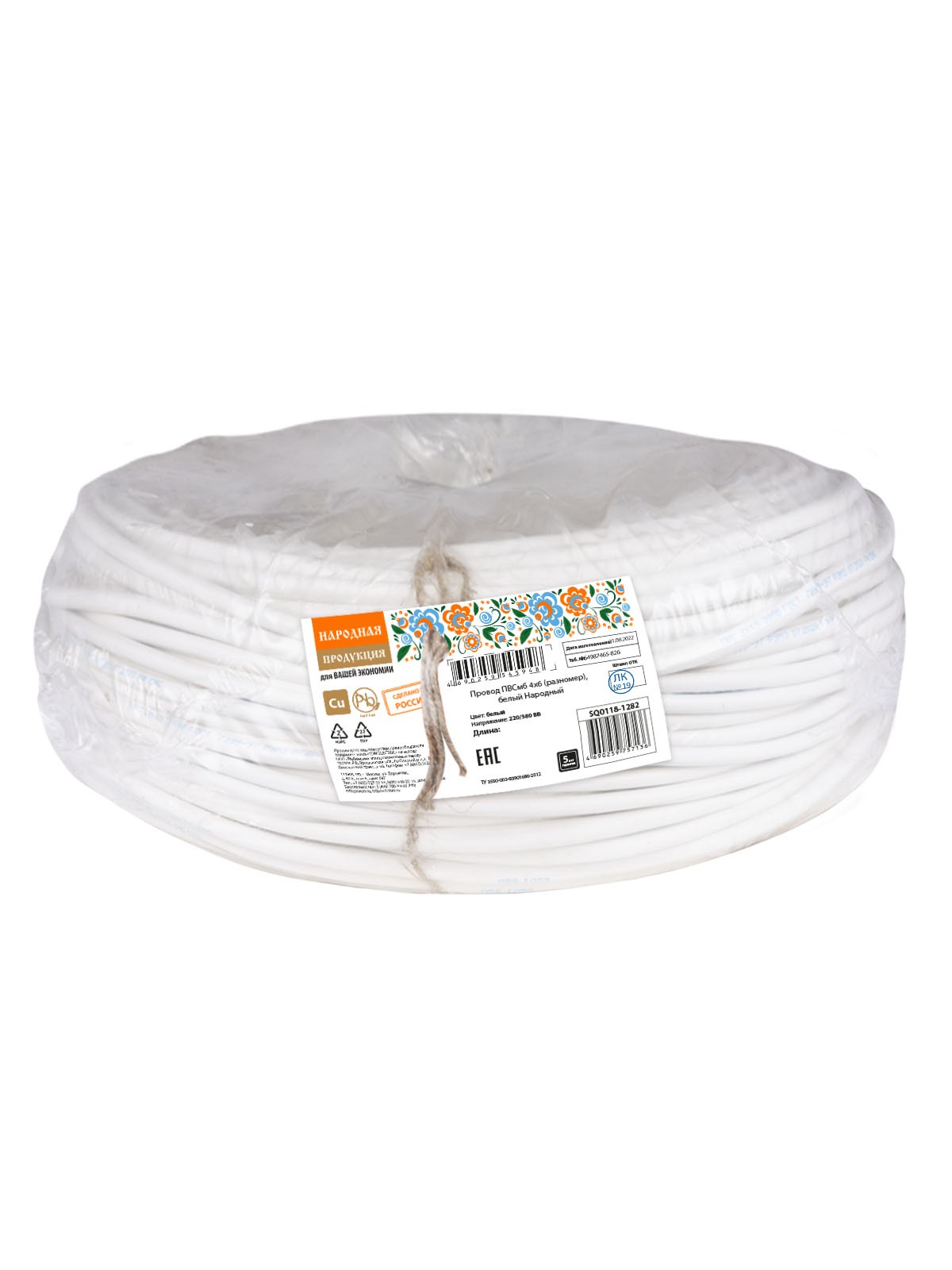 Провод ПВСмб 4х6 (разномер), белый Народный