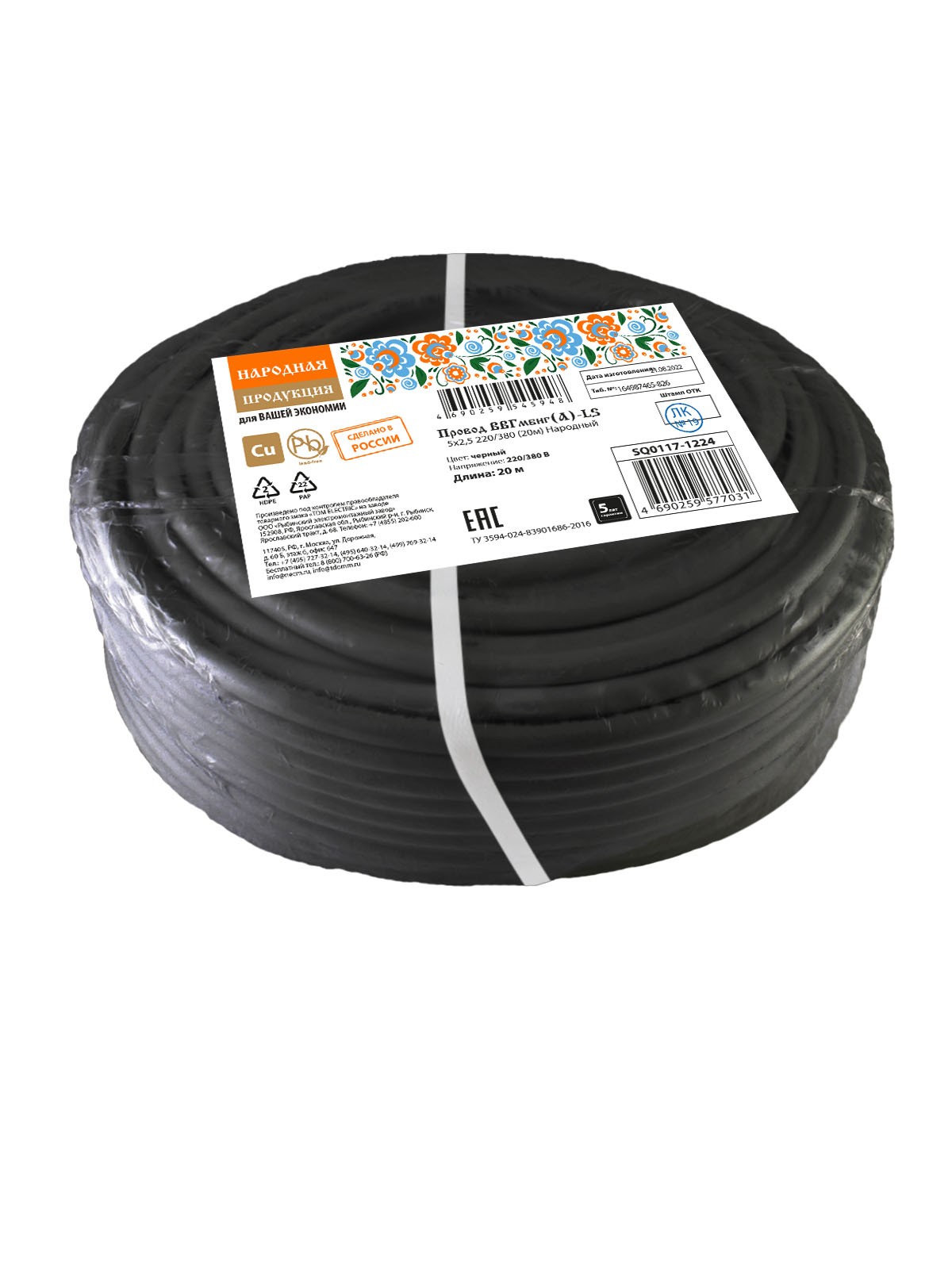 Провод ВВГмбнг(А)-LS 5х2,5 220/380 (20м) Народный