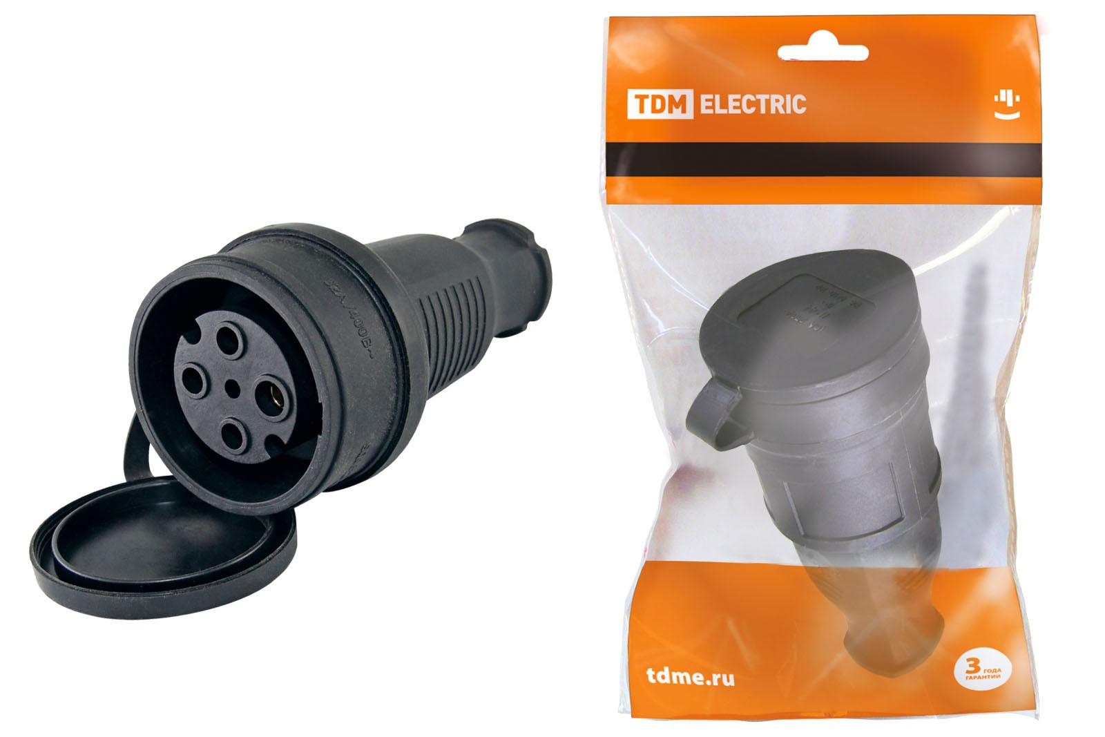 Розетка переносная с заглушкой каучук 2Р+РЕ 16А 250В IP44 TDM
