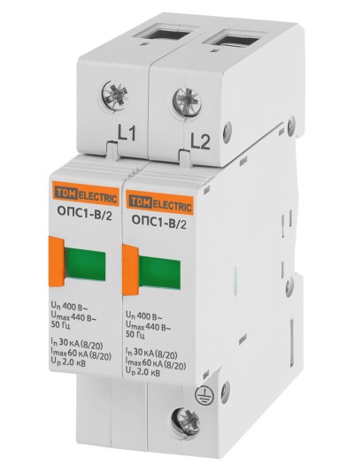Разрядник ОПС1-B 2Р In=30kA Un=400B Im=60kA TDM