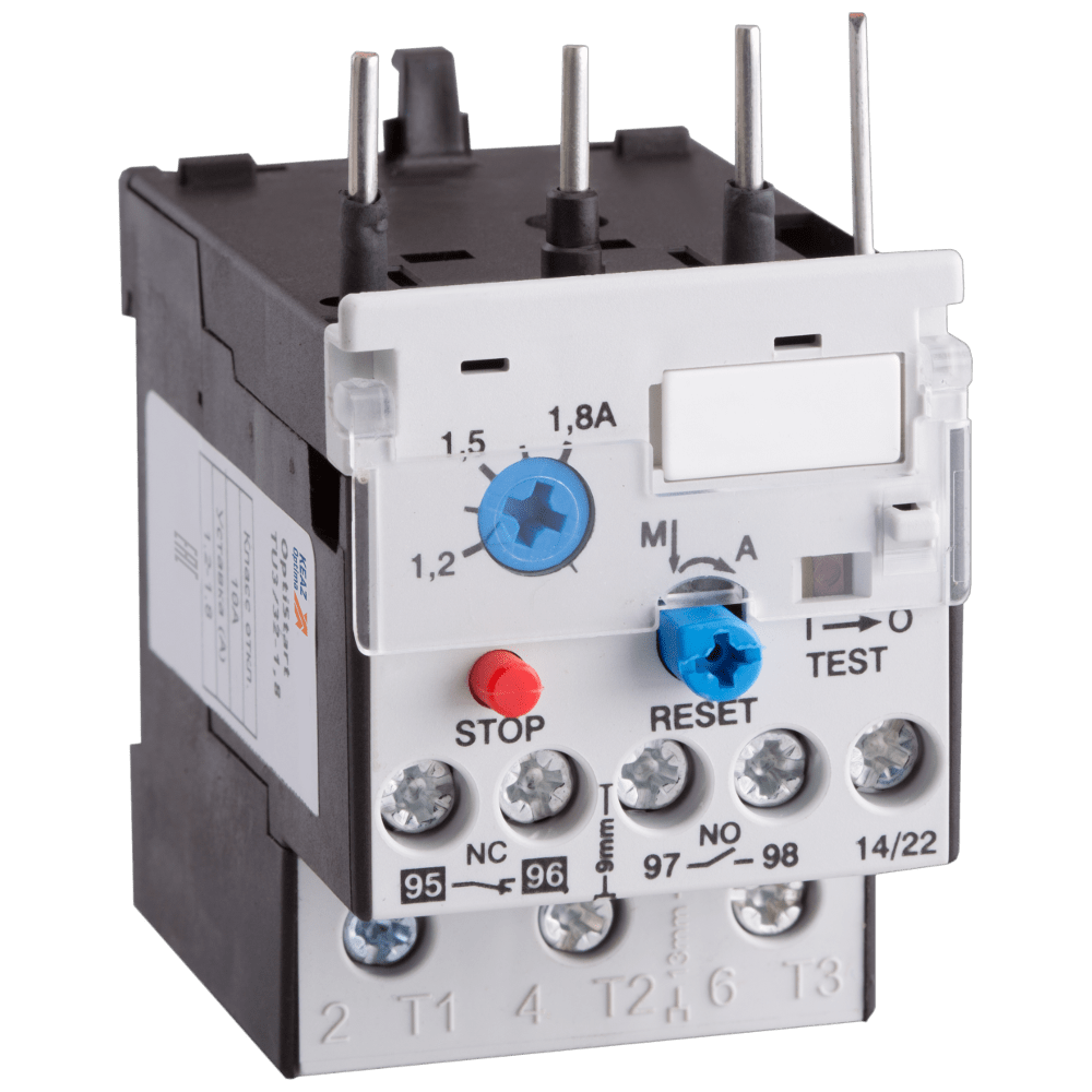 Реле тепловое на номинальный ток 0.18 А, диапазоном регулировки теплового расцепителя 0,12-0,18 А и классом отключения 10A .
