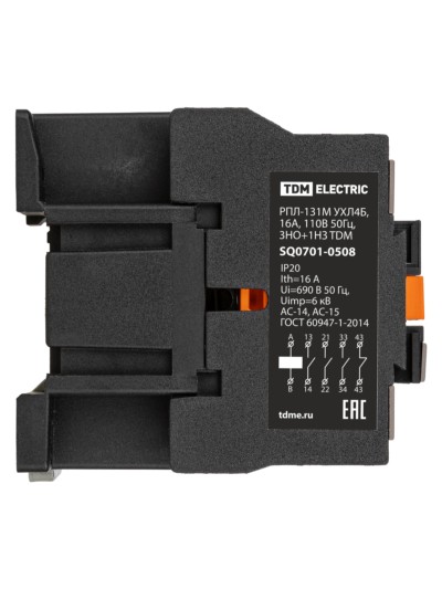 РПЛ-131М УХЛ4Б, 16А, 110В 50Гц, 3НО+1НЗ TDM