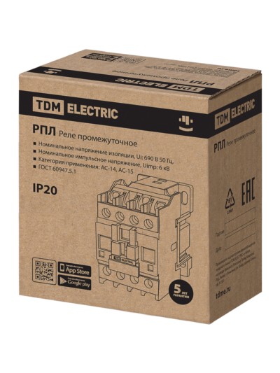 Реле промежуточное РПЛ-131М УХЛ4Б, 16А, 110В 50Гц, 3НО+1НЗ TDM