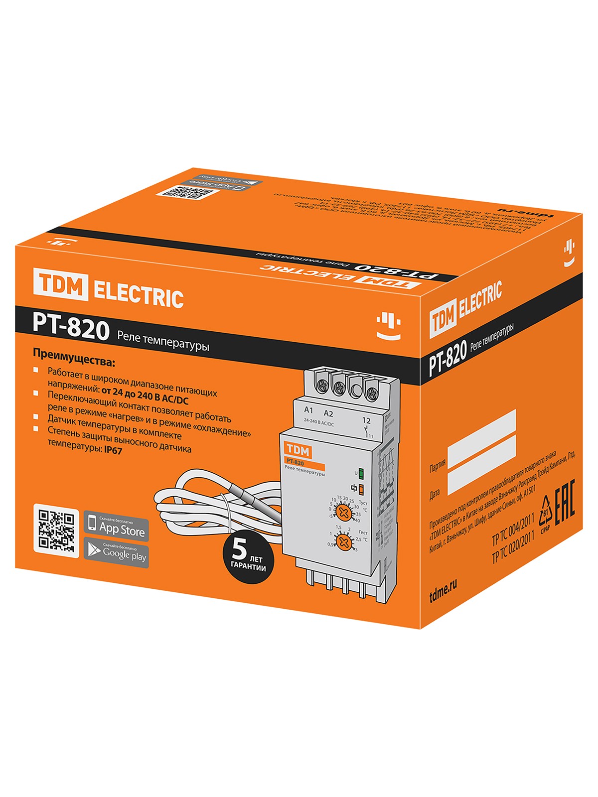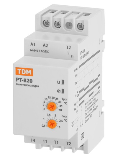 Реле температуры РТ-820 (-5+40С, 24-240В АС/DC, с датч. IP67) TDM