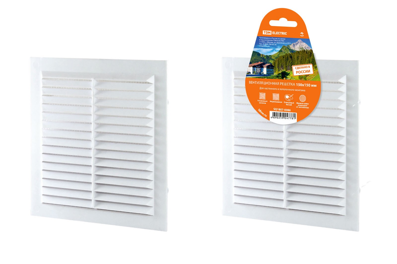 Решетка неразъемная с москитной сеткой, бел. 150х150 TDM