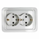 Розетка 2-м CLASSICO защ. шторки с/з 2128x бел. In Home 4690612000985