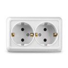 Блок ОП Олимп 2-кл. вык. с подсветкой + роз. с заземл. горизонт. бел. UNIVersal О0037