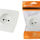 Розетка с крышкой 2П+З с защитными шторками 16А 250В IP44 белая “Онега” TDM