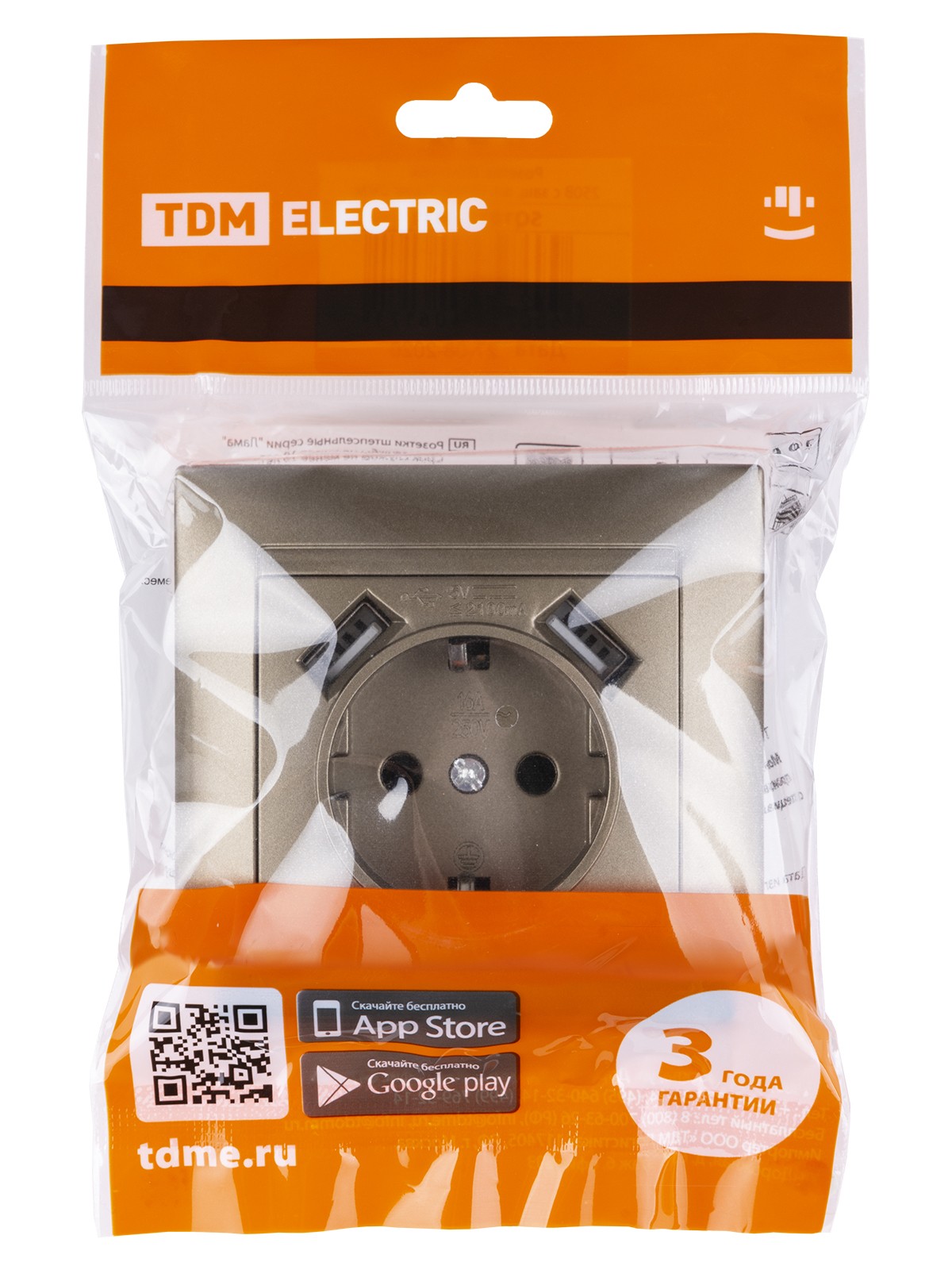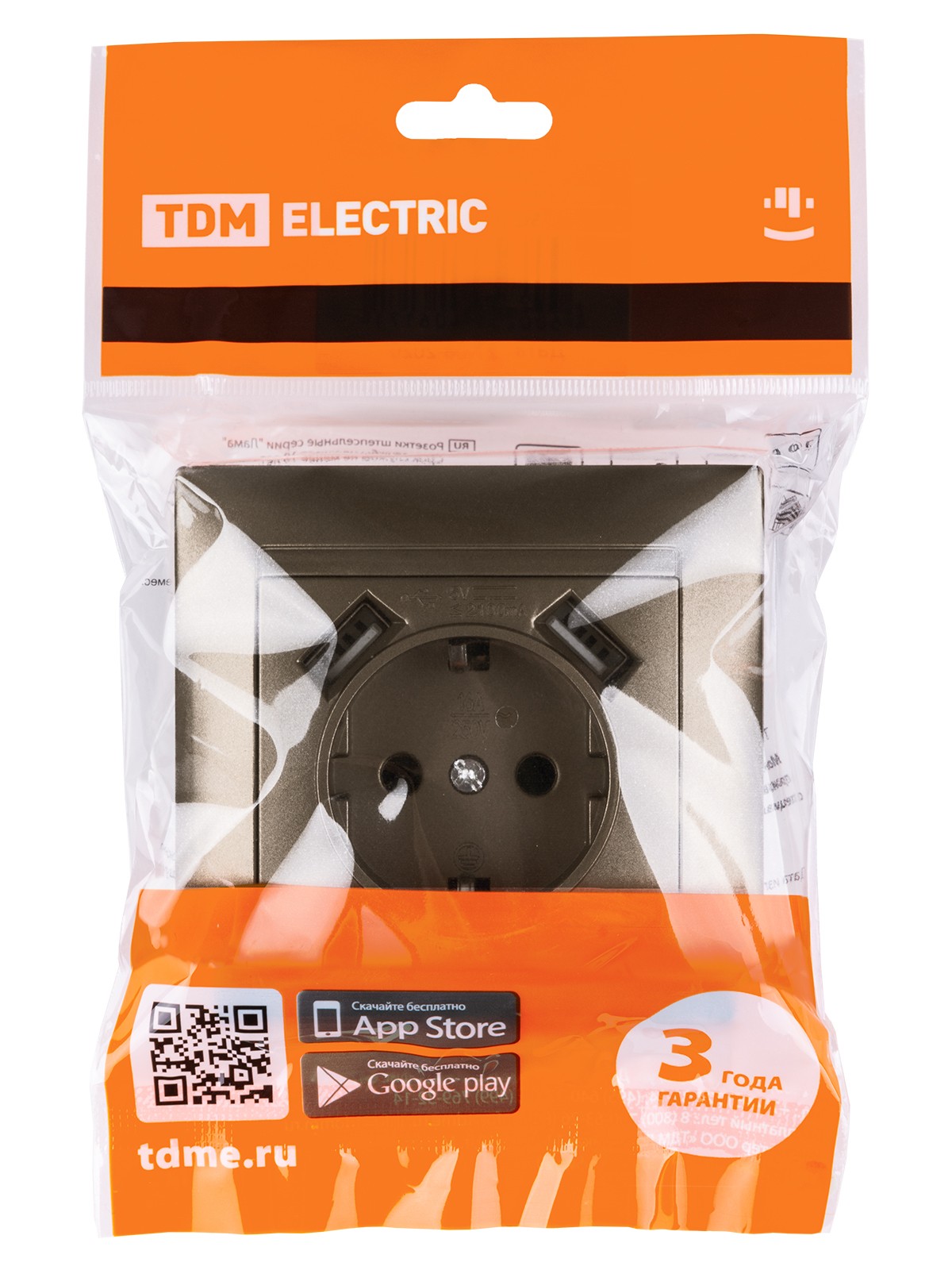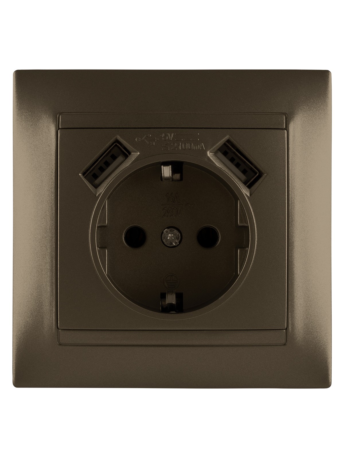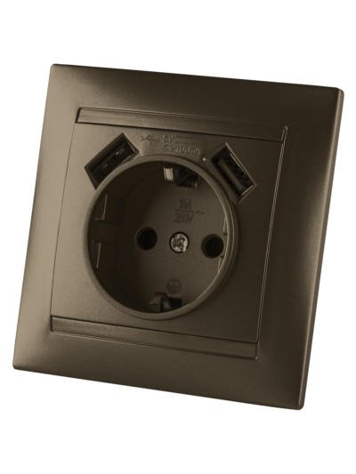 Розетка 2П+З 16А 250В + 2 USB порта 2,1А 5В бронза “Лама” TDM