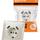 Розетка 2П+З 16А 250В + 2 USB порта 2,1А 5В шоколад “Лама” TDM