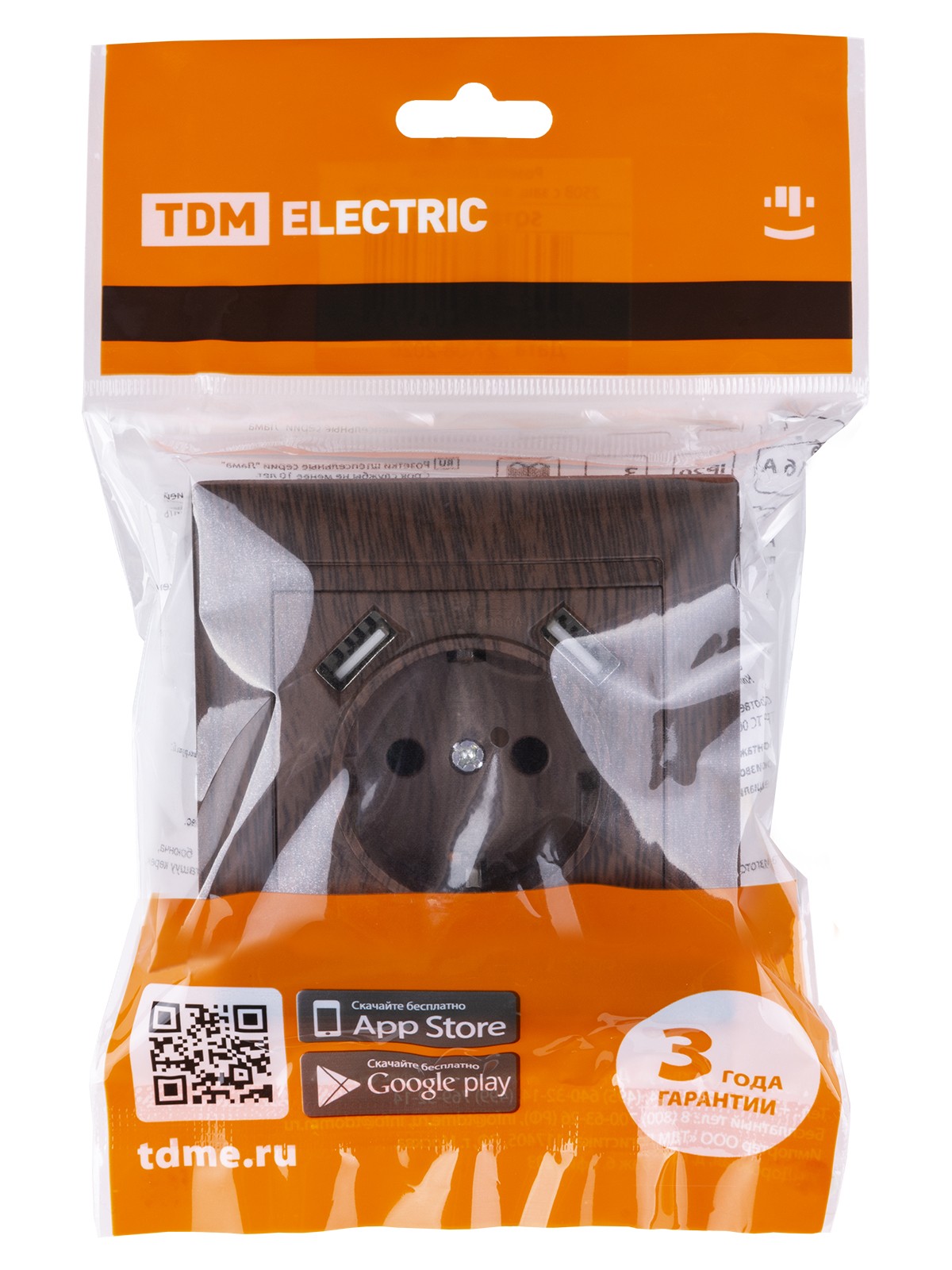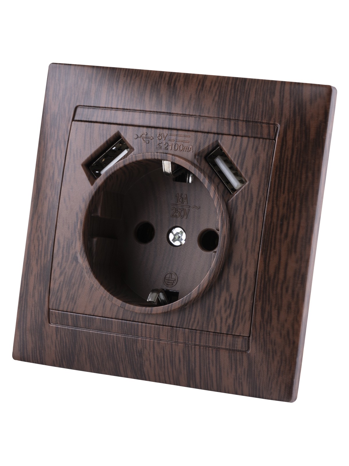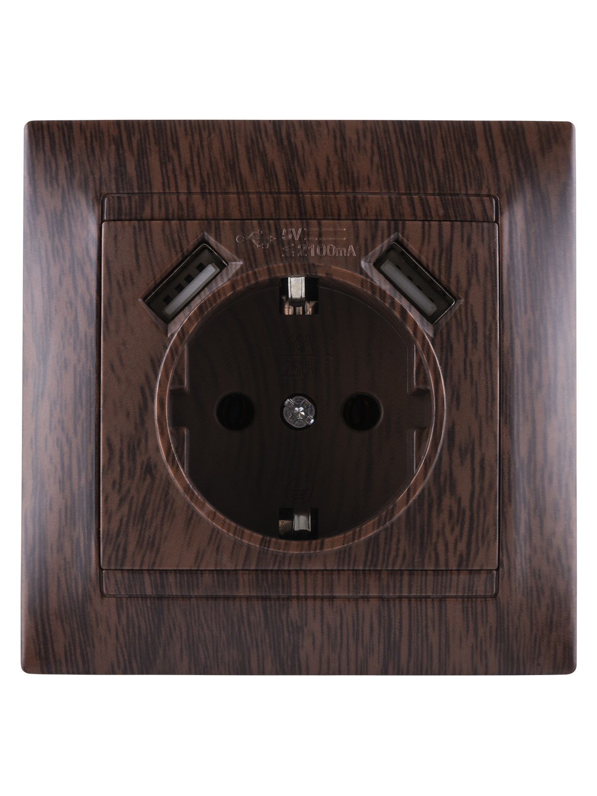 Розетка 2П+З 16А 250В + 2 USB порта 2,1А 5В венге "Лама" TDM