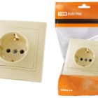 Розетка двойная 2П+З с защ. шт. и крышкой 16А 250В IP44 сл. кость “Таймыр” TDM