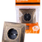 Розетка 2П+З 16А 250В IP44 с защ. шт. с крышкой старинная бронза “Лама” TDM