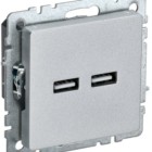 Розетка BRITE РЮш10-2-БрА 16А с USB A+A 3.1А с/з защ. шторки алюм. IEK BR-R14-16-U21-D31-K47