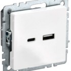 Розетка BRITE РЮш11-1-БрБ 16А с USB A+C 18Вт с/з защ. шторки бел. IEK BR-R14-16-U22-018-K01