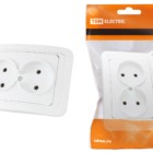 Розетка двойная 2П+З 16А c защитными шторками белая “Валдай” (пром. упаковка) TDM