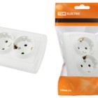 Розетка двойная 2П+З 16А 250В с защ. шт. белая “Онега” TDM