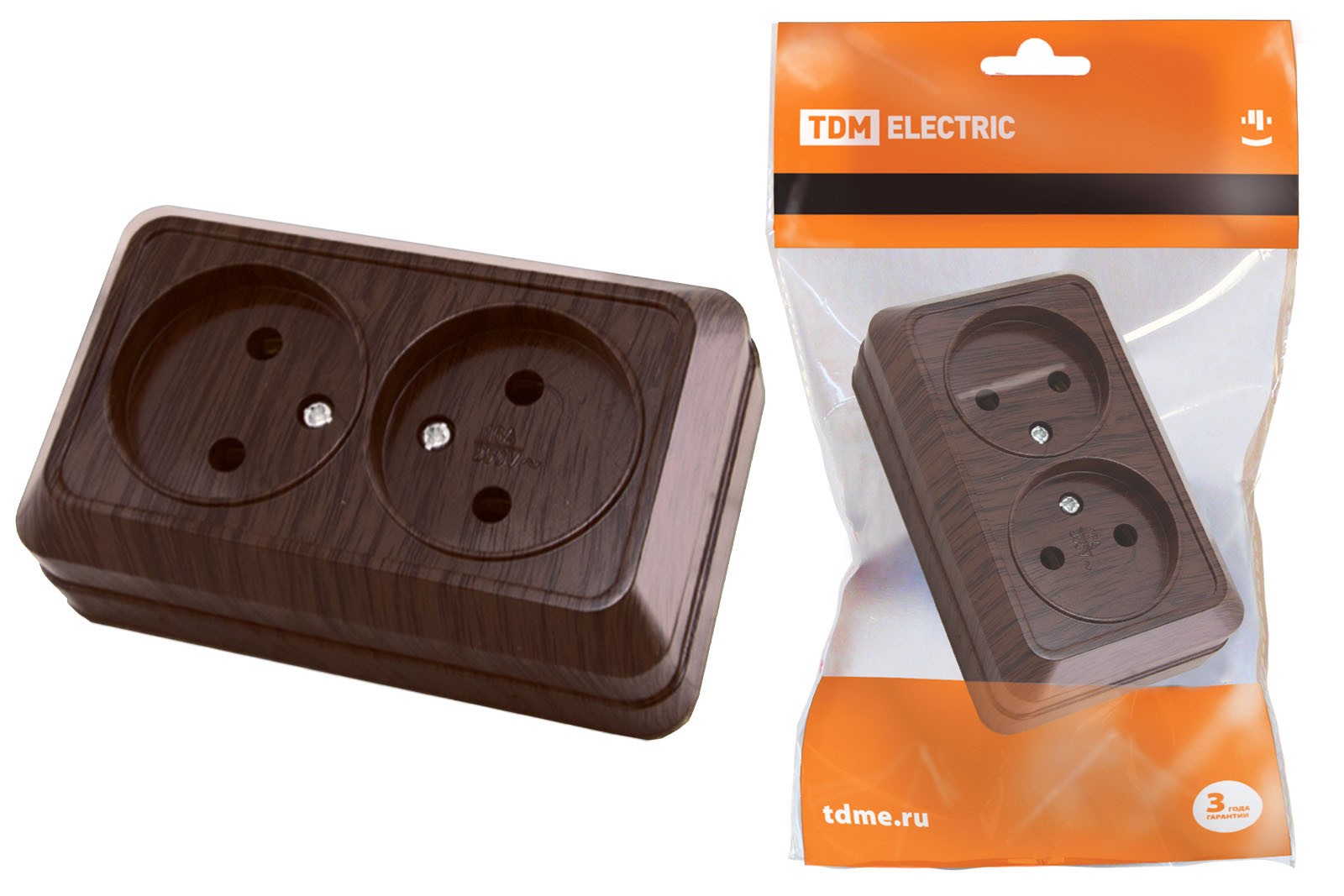 Розетка двойная 2П+3 открытой установки IP20 16А 250В (керамика) бук “Ладога” TDM