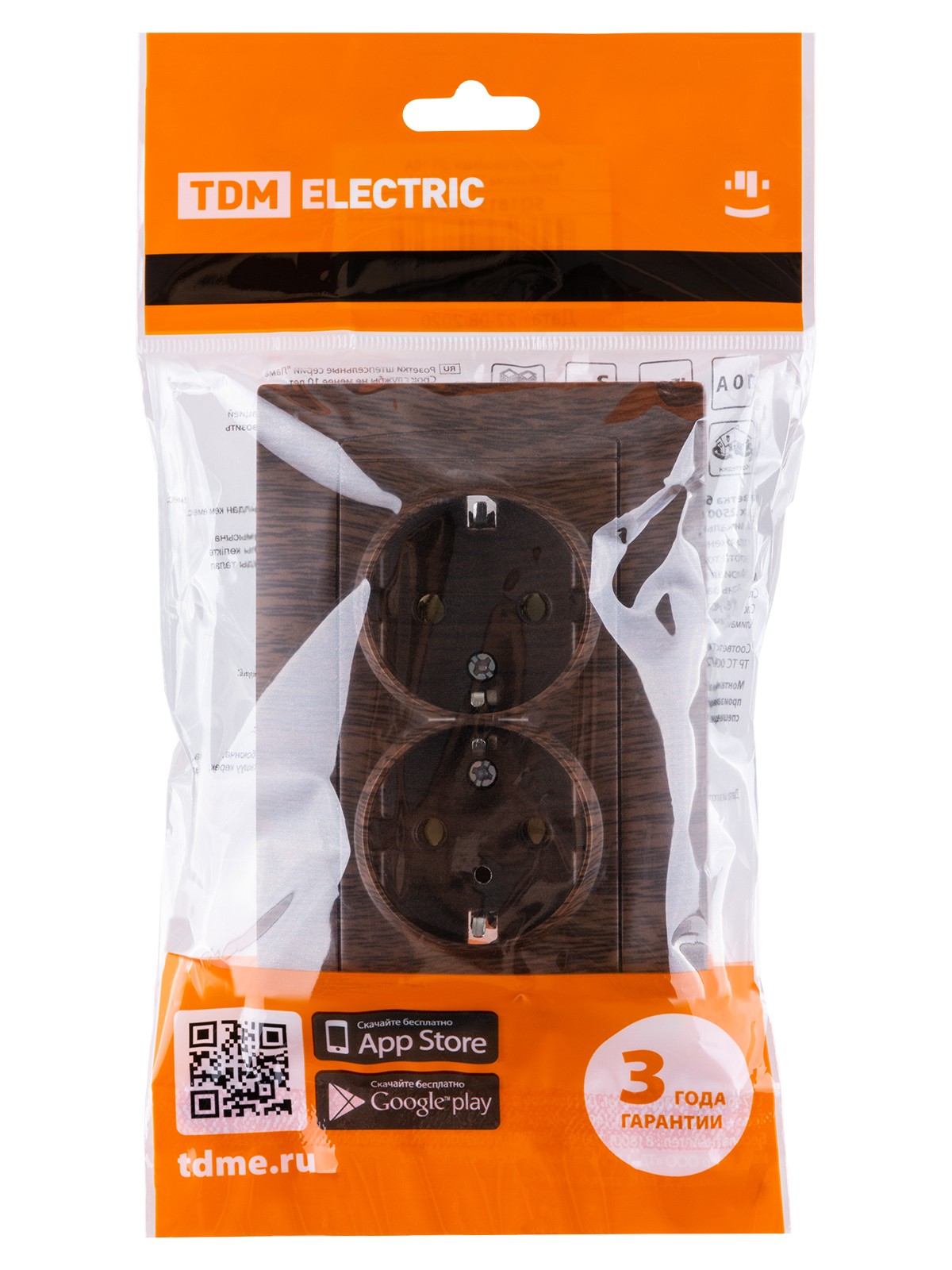 Розетка двойная 2П+З 16А 250В венге “Лама” TDM