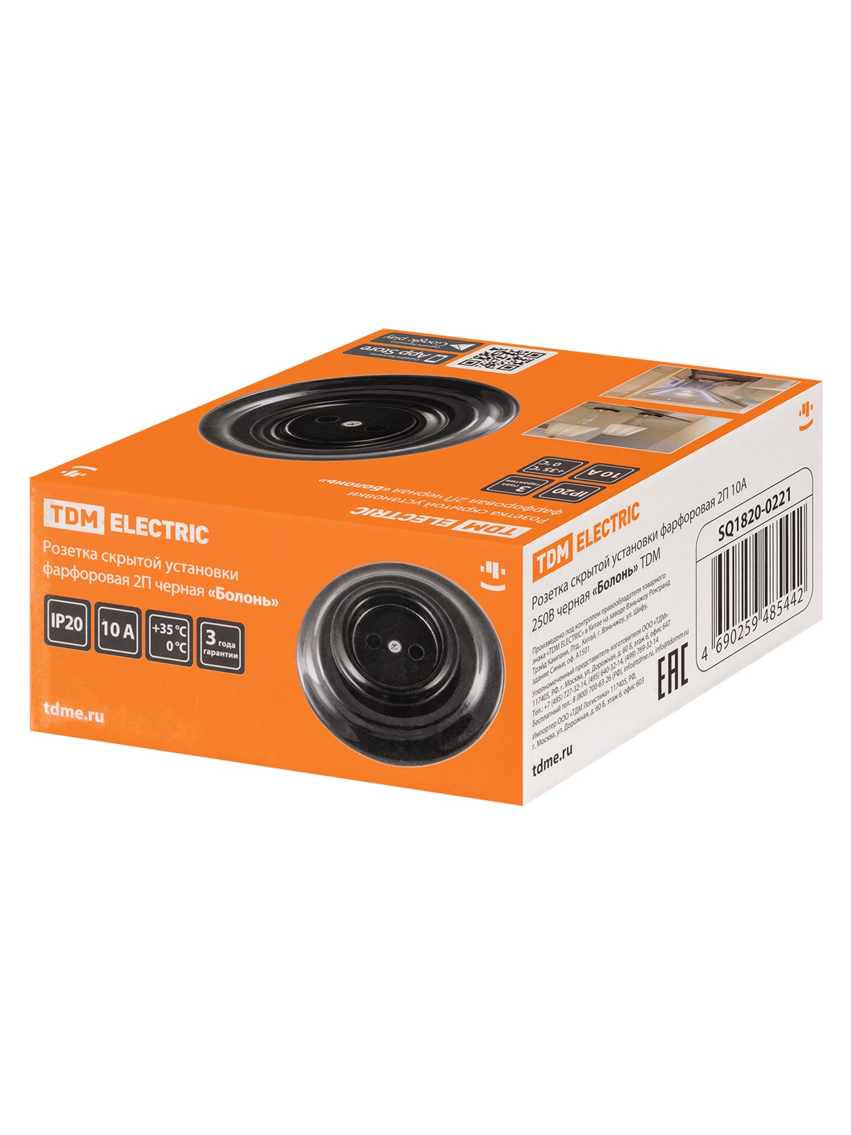 Розетка скрытой установки фарфоровая 2П+З 16А 250В черная «Болонь» TDM