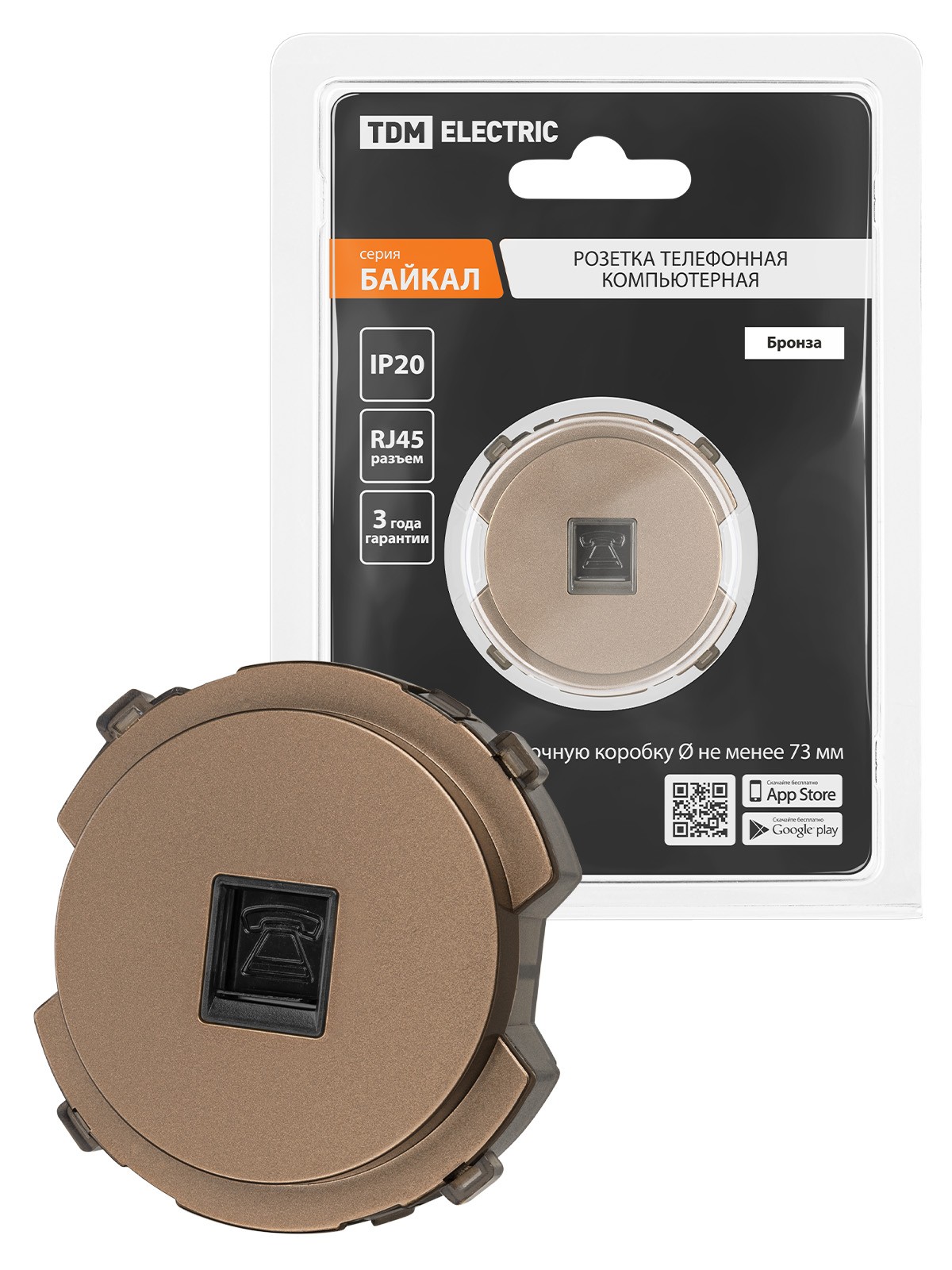 Розетка телефонная RJ11 + TV розетка оконечная бронза, “Байкал” TDM