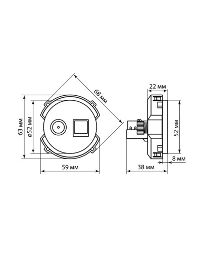 Розетка компьютерная RJ45 + TV розетка оконечная платина, “Байкал” TDM