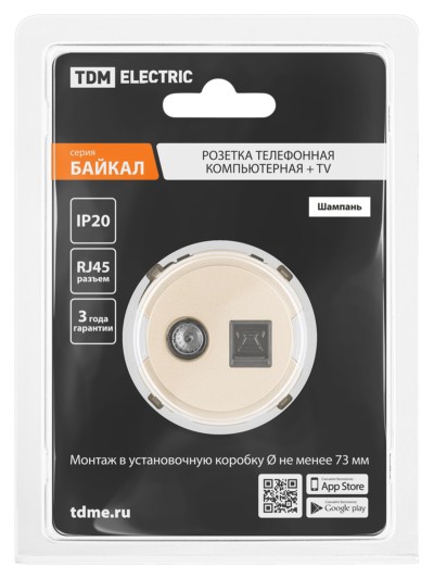 Розетка телефонная RJ11 + TV розетка оконечная шампань, “Байкал” TDM