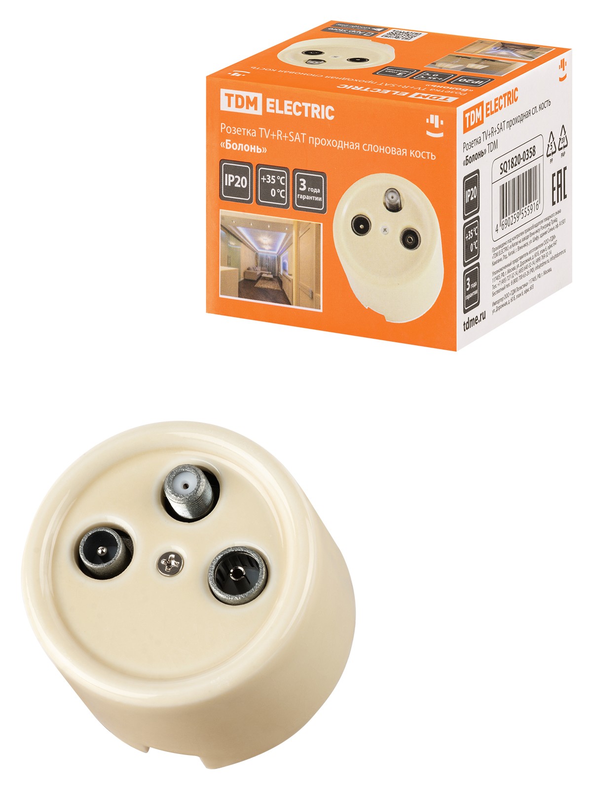 Розетка ТВ+R+ SAT оконечная белая «Болонь» TDM