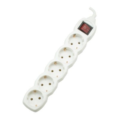 Удлинитель сетевой с фильтром 5х1.8м с/з 10А IP20 2.2кВт ПВС 3х0.75 с выкл. с индикатором сети бел. Космос FKsm1.8m-5g(W)