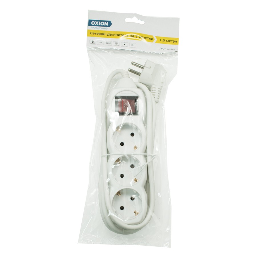 Удлинитель сетевой 5-м 1.5м с выкл. Oxion Pod OX-SPR5S1.5MWH