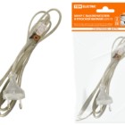 Шнур с плоской вилкой и светорегулятором ШУ05С1 (200Вт, RL) ШВВП 2х0,75мм2 2м. белый TDM