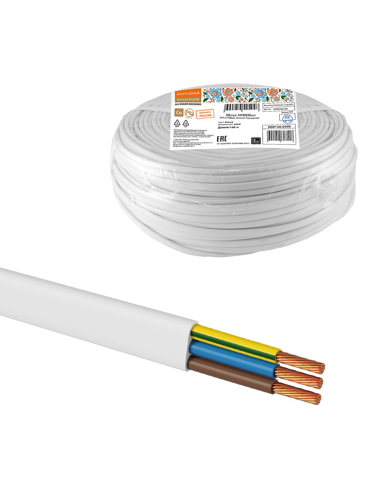 Шнур ШВВПмб 3х0,5 (100м), белый Народный