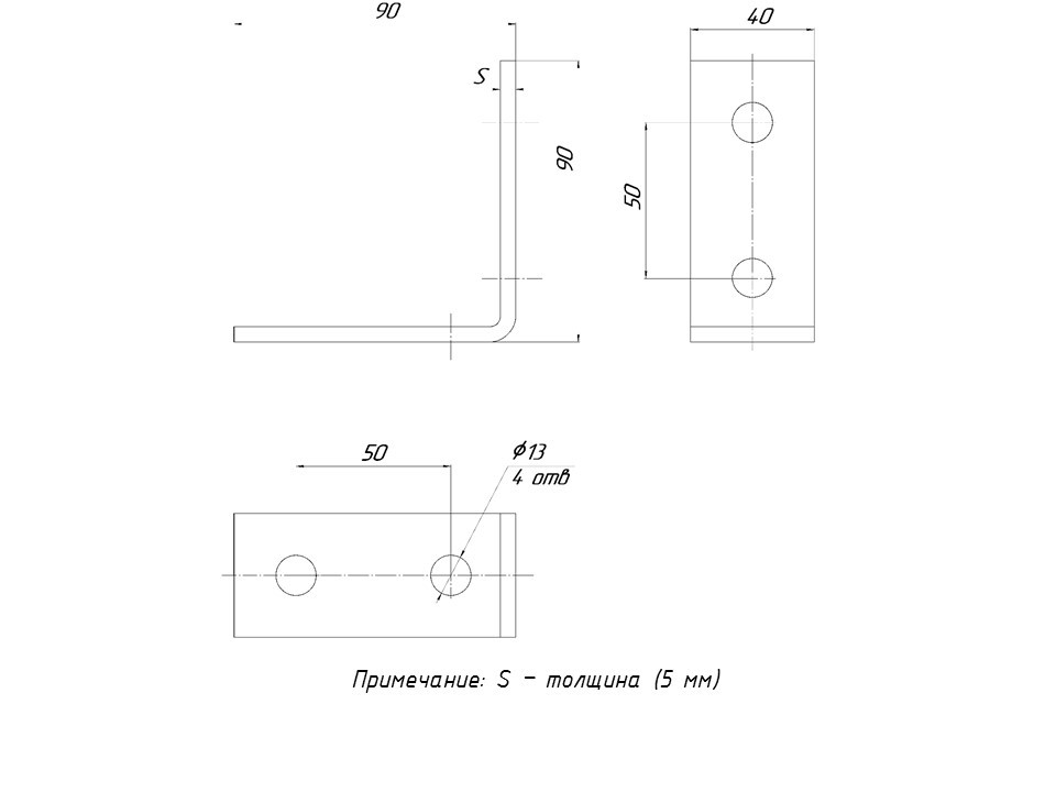 STRUT-пластина угловая 90гр, 4 отверстия HDZ EKF