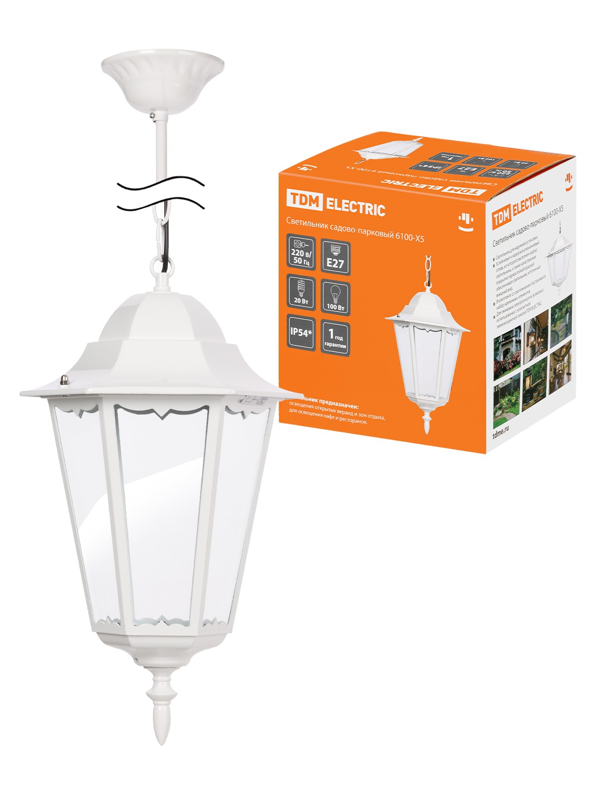 Светильник садово-парковый НСУ 06-60-001 шестигранник, подвес, пластик, белый TDM
